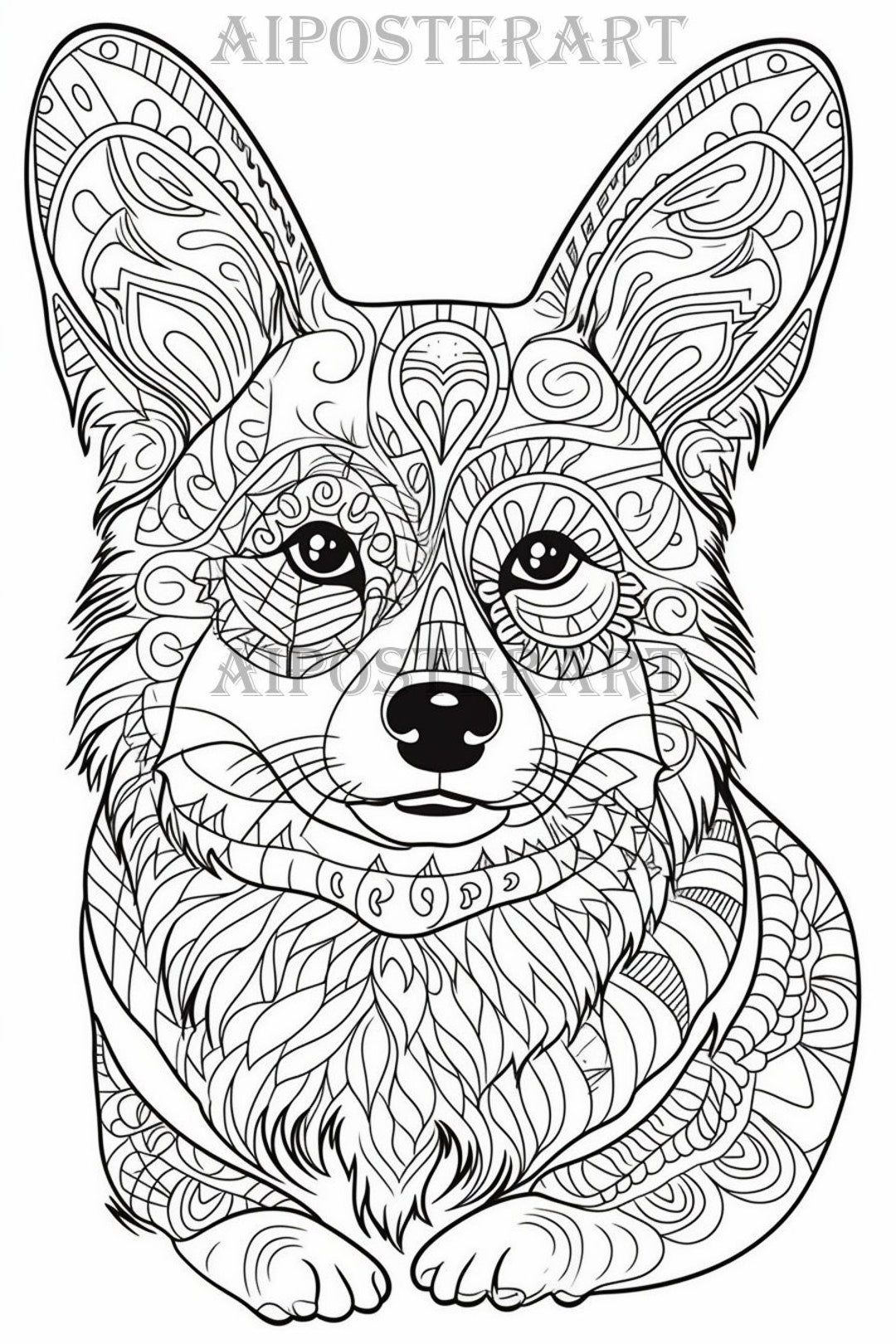 Corgi Dog Mandala Coloring Sheet For Adults Printable Dog Coloring Page Advanced Coloring High Res 1792×2688 Pixels Etsy