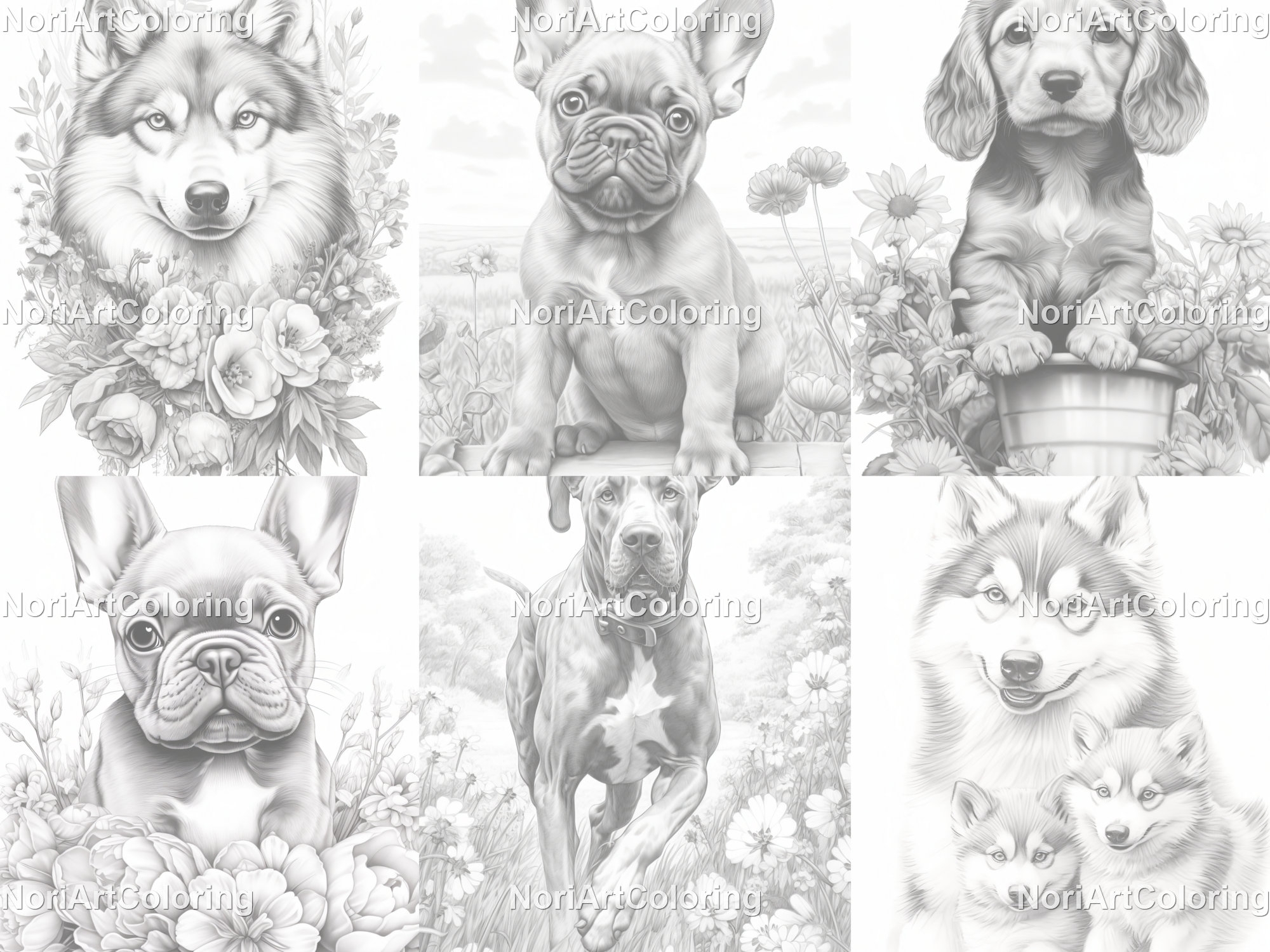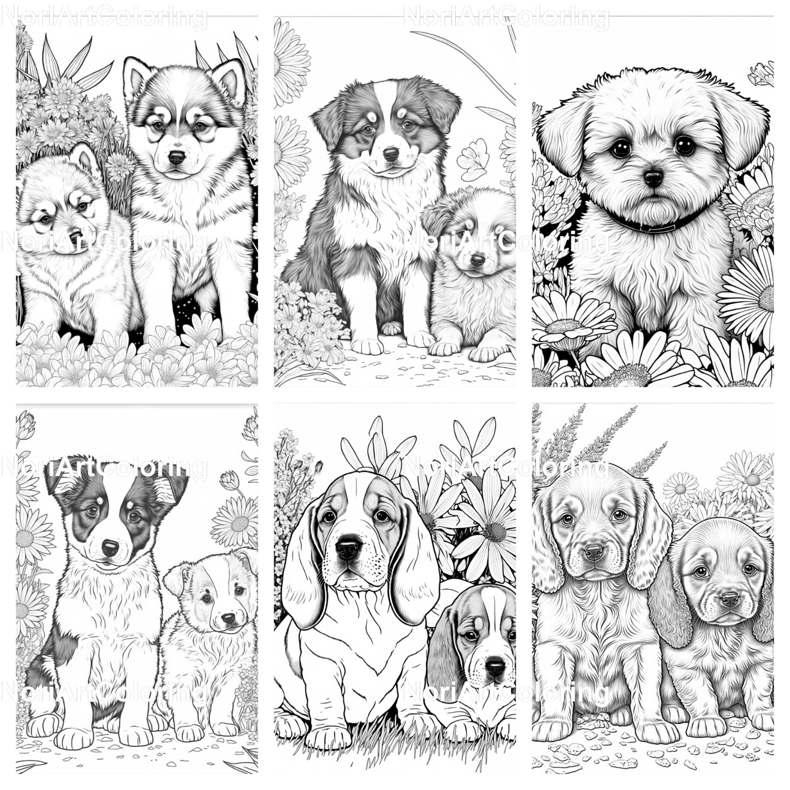10 Cute Puppies Different Species Coloring Book Printable Adult Coloring Pages Download Grayscale Illustration Printable PDF File Etsy